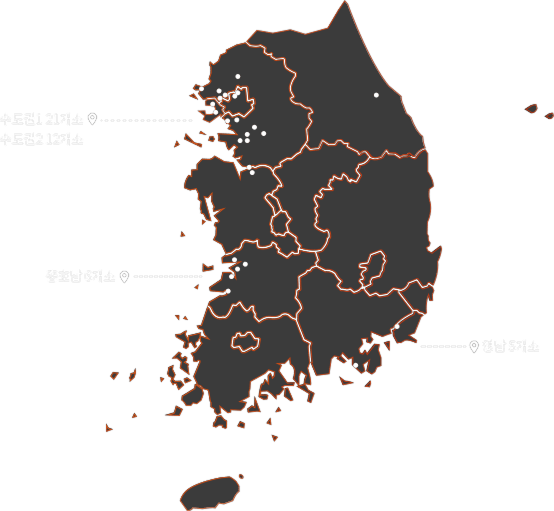 수도권1 21개소, 수도권2 12개소, 충호남 6개소, 영남 5개소